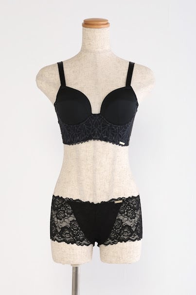 フロント部分は裏打ち付きで透けにくくベージュ、ブラックの2色展開でリアルユースに便利なカラーバリエーション。