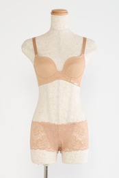 脇高のサイドベルトとサイドの丸みを削ったカップで、バスト全体、背中からも無理なくカップ内にカバーし、内向きに寄せ上げます。