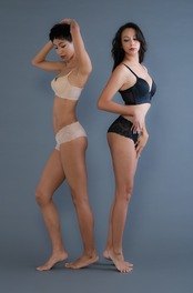 バストを内側へプッシュすることでボディのサイドに幅広の影を作り、シェーディング効果で劇的な着やせを実現。